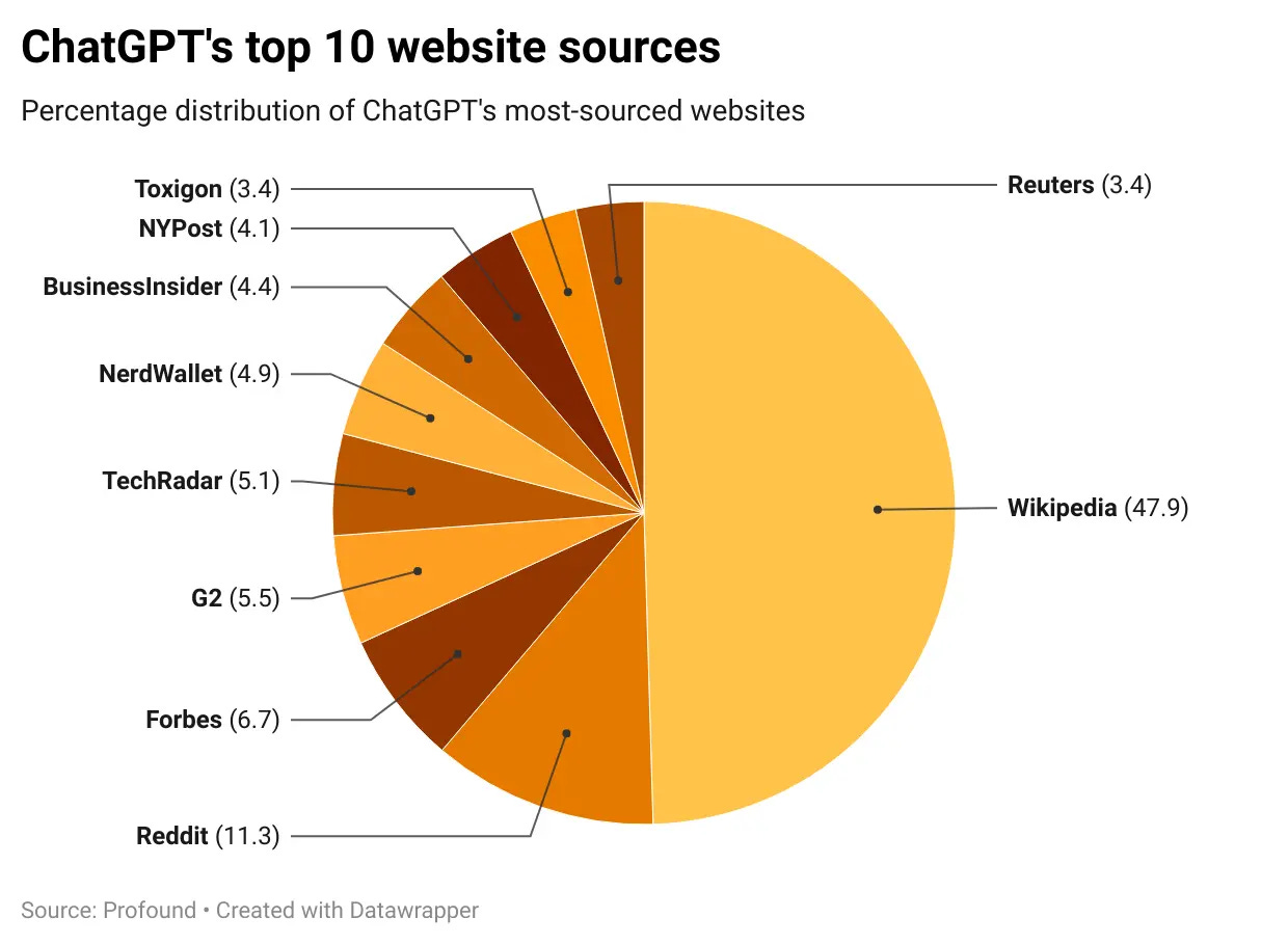 📚 Skąd ChatGPT czerpie wiedzę? Profound przeanalizował 10 mln cytowań.