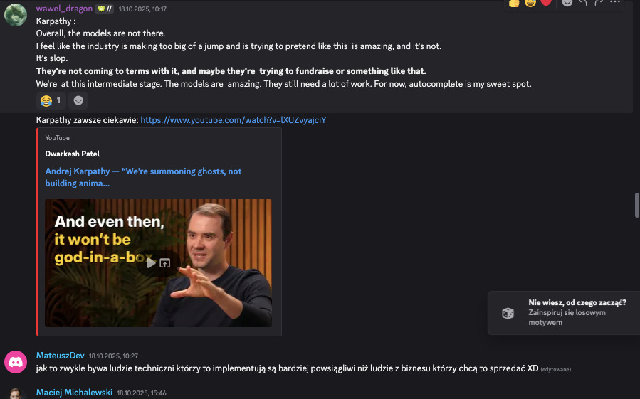 Temat z tytułu: 🗣 Andrej Karpathy: “Agentowa AI to tandeta […] upłynie dekada zanim to zacznie naprawdę działać”