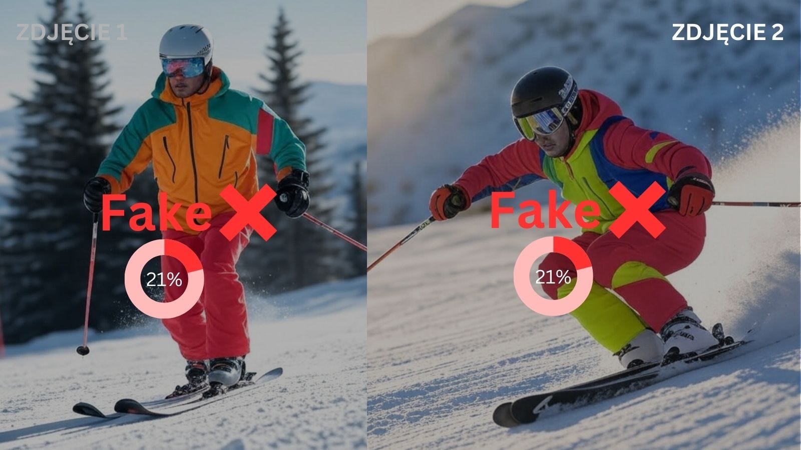 Obaj narciarze zostali wygenerowani przez AI, ale aż 79% z Was postawiło na to, że któryś z nich jest prawdziwy (29% głosowało na zdjęcie nr 1, a 50% na zdjęcie nr 2).