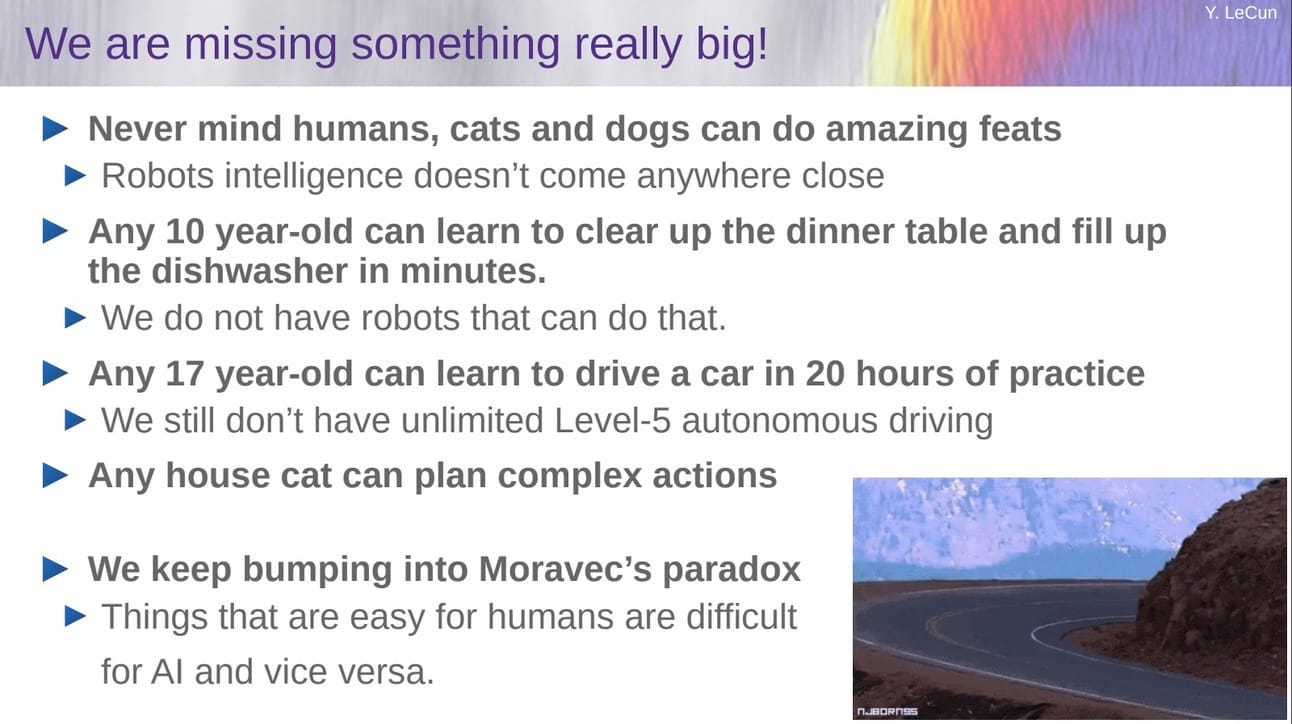 LeCun mówi jasno: obecne duże modele językowe mają ograniczoną wiedzę o rzeczywistości, która za nimi stoi. Autoregresyjne LLM są skazane na porażkę, jeśli chodzi o osiągnięcie prawdziwej inteligencji na poziomie ludzkim.
