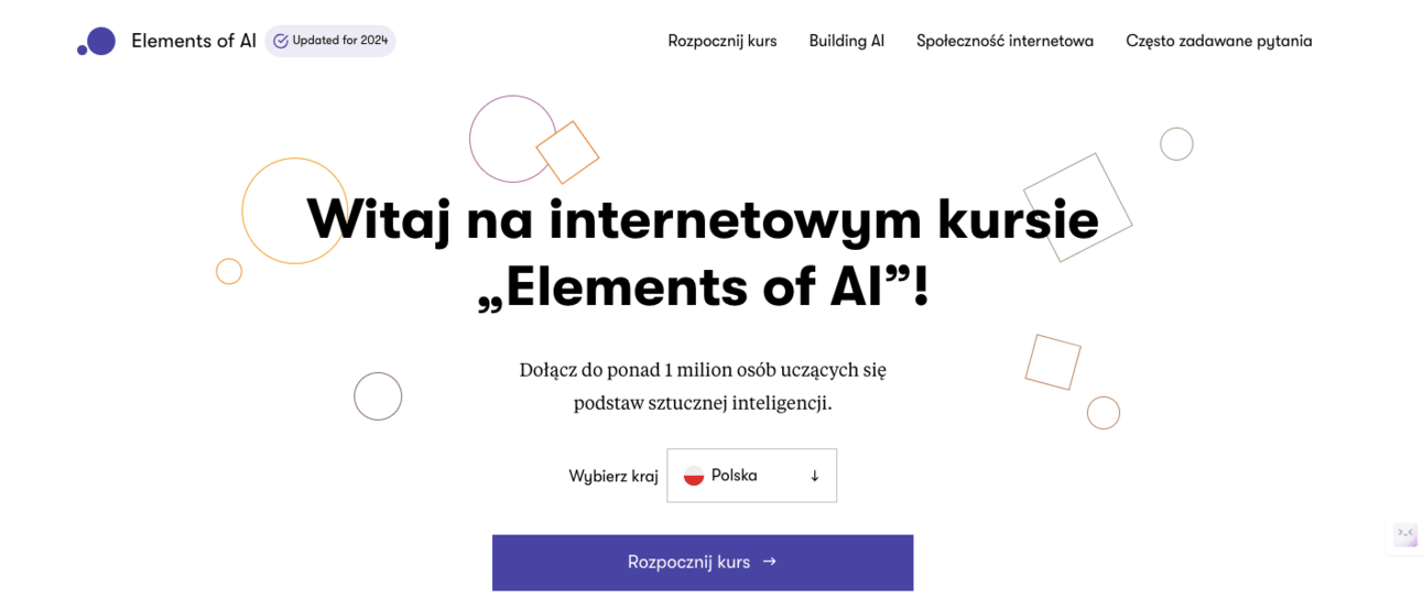 „Elements of AI” to seria bezpłatnych kursów online stworzonych przez MinnaLearn i Uniwersytet Helsiński (partnerem jest Uniwersytet Jagielloński).