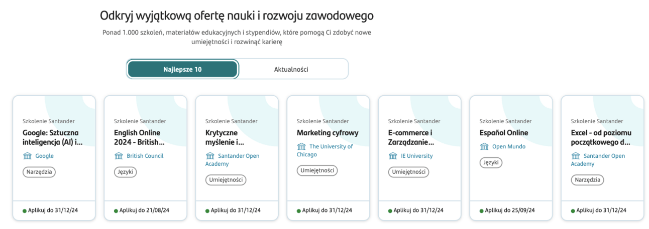 🔗 Wejdź na platformę e-learningową Santander, przejdź kurs i pobierz certyfikat ukończenia