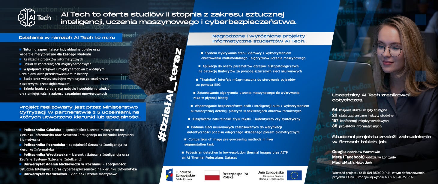 Ten projekt otrzymał dofinansowanie w ramach Programu Operacyjnego Polska Cyfrowa i uruchomił w jego ramach swoisty model systemowego kształcenia wysokiej klasy specjalistów w zakresie sztucznej inteligencji, uczenia maszynowego oraz cyberbezpieczeństwa.