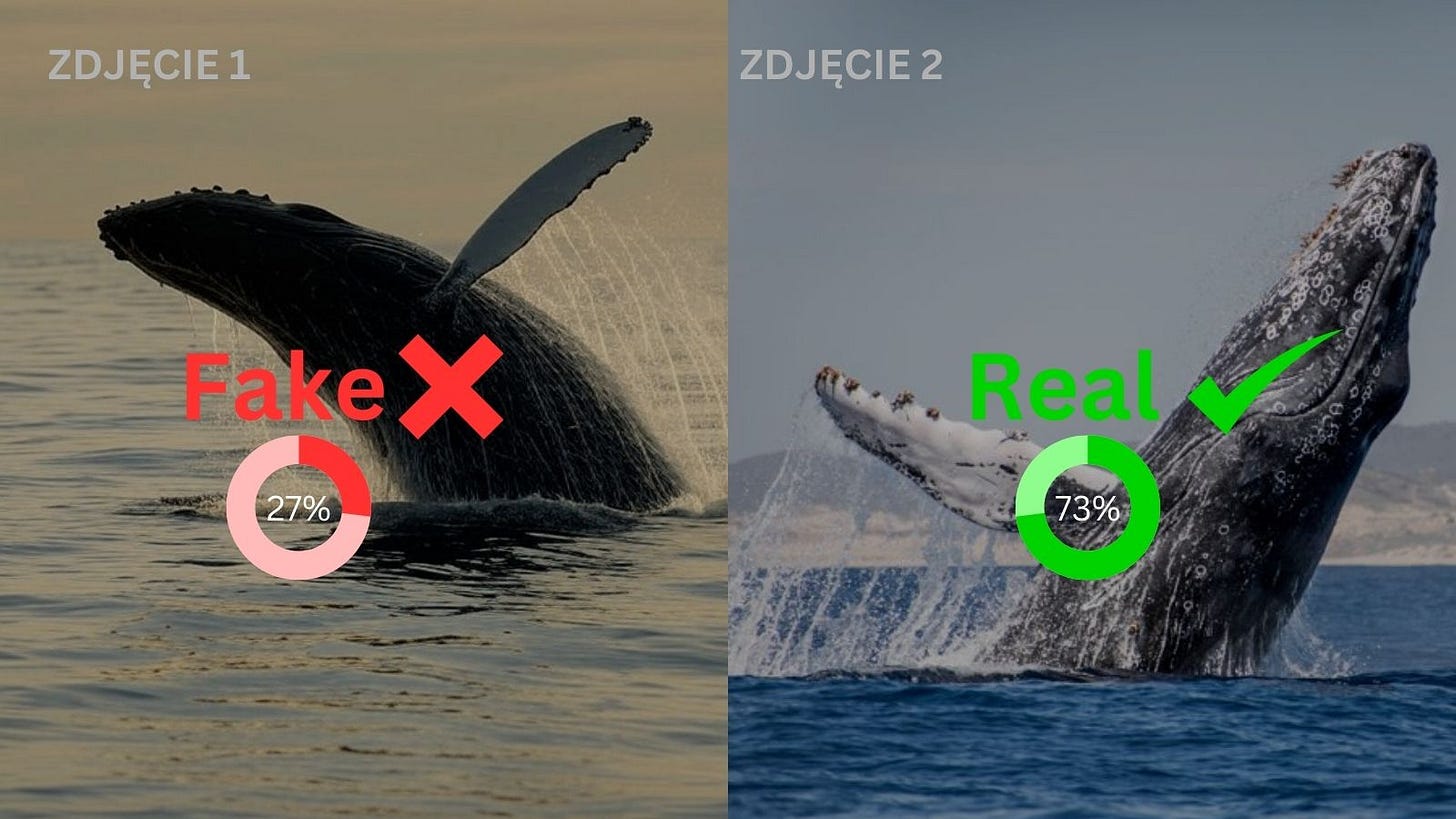Tak jak cieżko nie dostrzec wieloryba, tak odróżnić AI wieloryba od tego prawdziwego, to już sztuka! I Wam się to udało. Rozpoznaliście największe zwierze na świecie niemal bez zawahania.