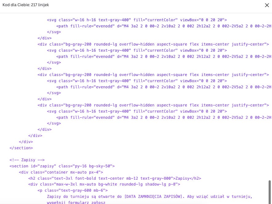 Oczywiście kodowanie w Canvie ma swoje ograniczenia, bo to proste kodowanie. Jest sporo do poprawienia. Wprawne oko zauważy, że jest dużo powielanych elementów, brak opisów, że struktura byłaby trudna do utrzymania, gdyby chodziło o większy projekt. Ale umówmy się… to jest dopiero pierwszy krok.