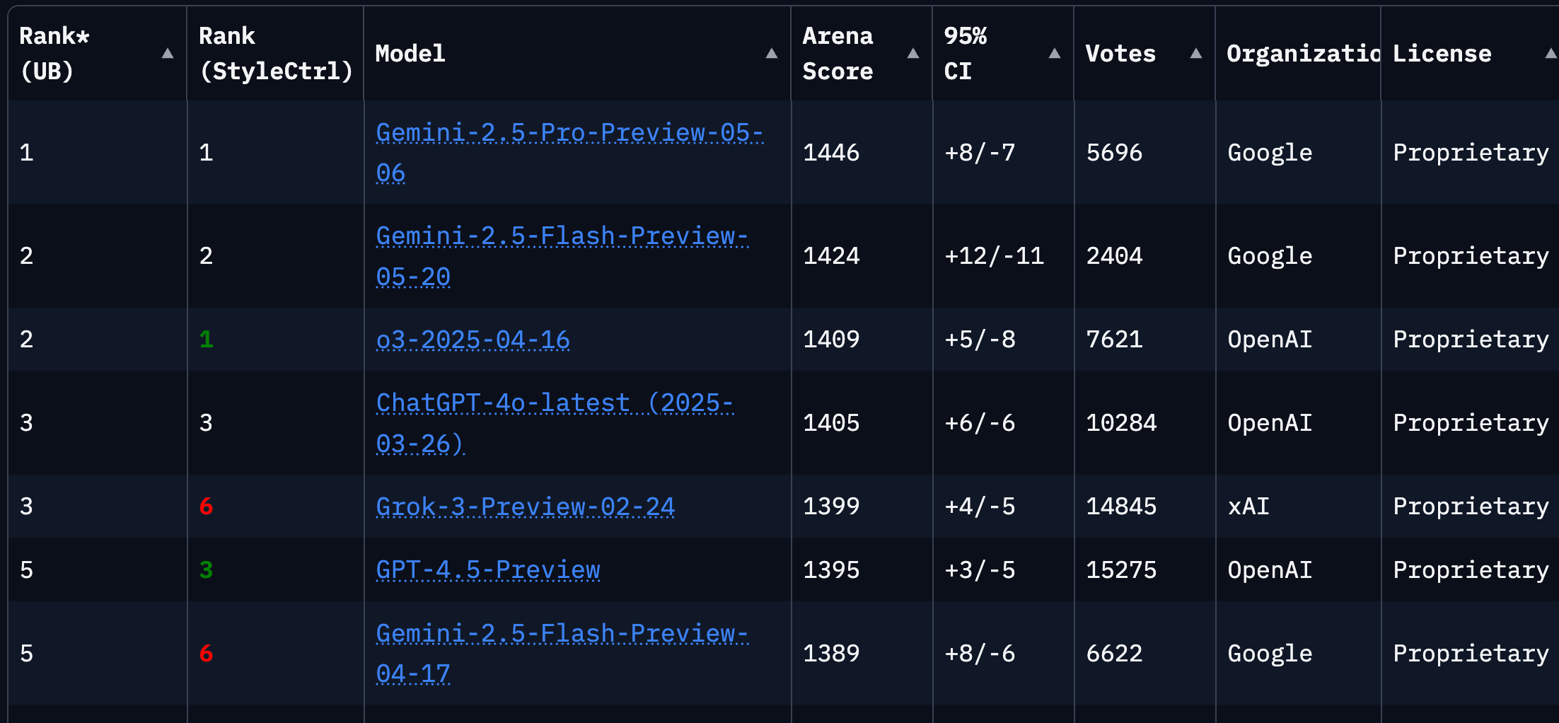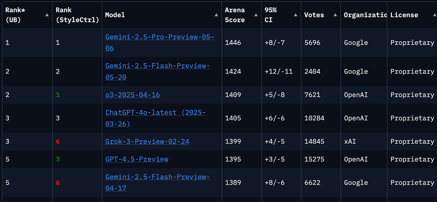 Google jest na szczycie. Teraz jest ich pora. Podium w poniższym rankingu to coś o co ścigają się wszystkie laboratoria tworzące modele AI. Na pierwszym i drugim miejscu są dwa modele od Google. Takiego widoku nie widzieliśmy od dawna. Google w końcu przyśpieszyło, a nawet przegoniło inne firmy.