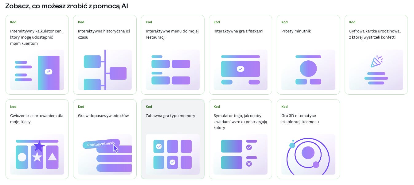 Ale już jest! Canva sprowadza kodowanie pod strzechy. Dla przykładu można:
