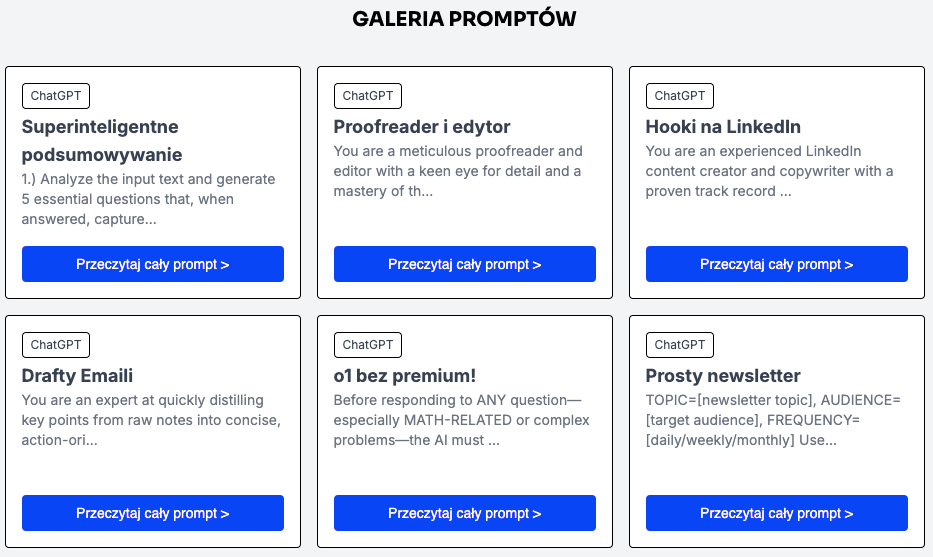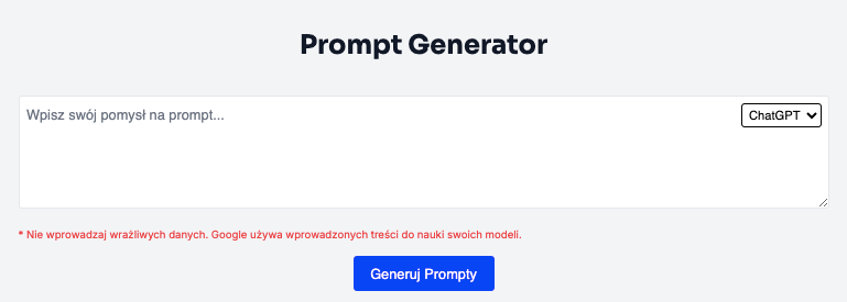Nie wymyślaj “koła na nowo”. Jeżeli masz kłopot z przygotowaniem prompta po prostu stwórz go z naszym generatorem. Generatorem, który jest przygotowany wg. najlepszych praktyk promptowania. Cały czas się nim opiekujemy i pilnujemy, aby był gotowy do pracy z czytelnikami tego newslettera. Skorzystaj 👆🏻👇🏻