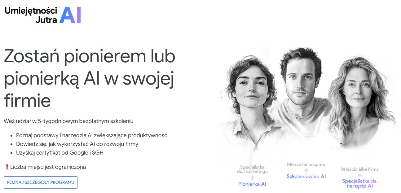 Kurs startuje pod nazwą: Odkryj potencjał narzędzi AI i zostań pionierem lub pionierką rozwiązań przyszłości w swojej firmie!