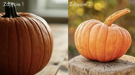 ✅ 78% z Was nie miało dylematu… i słusznie. Dynia ze Zdjęcia 2 jest prawdziwa, a tę po lewej wygenerowałem z pomocą AI tym promptem: