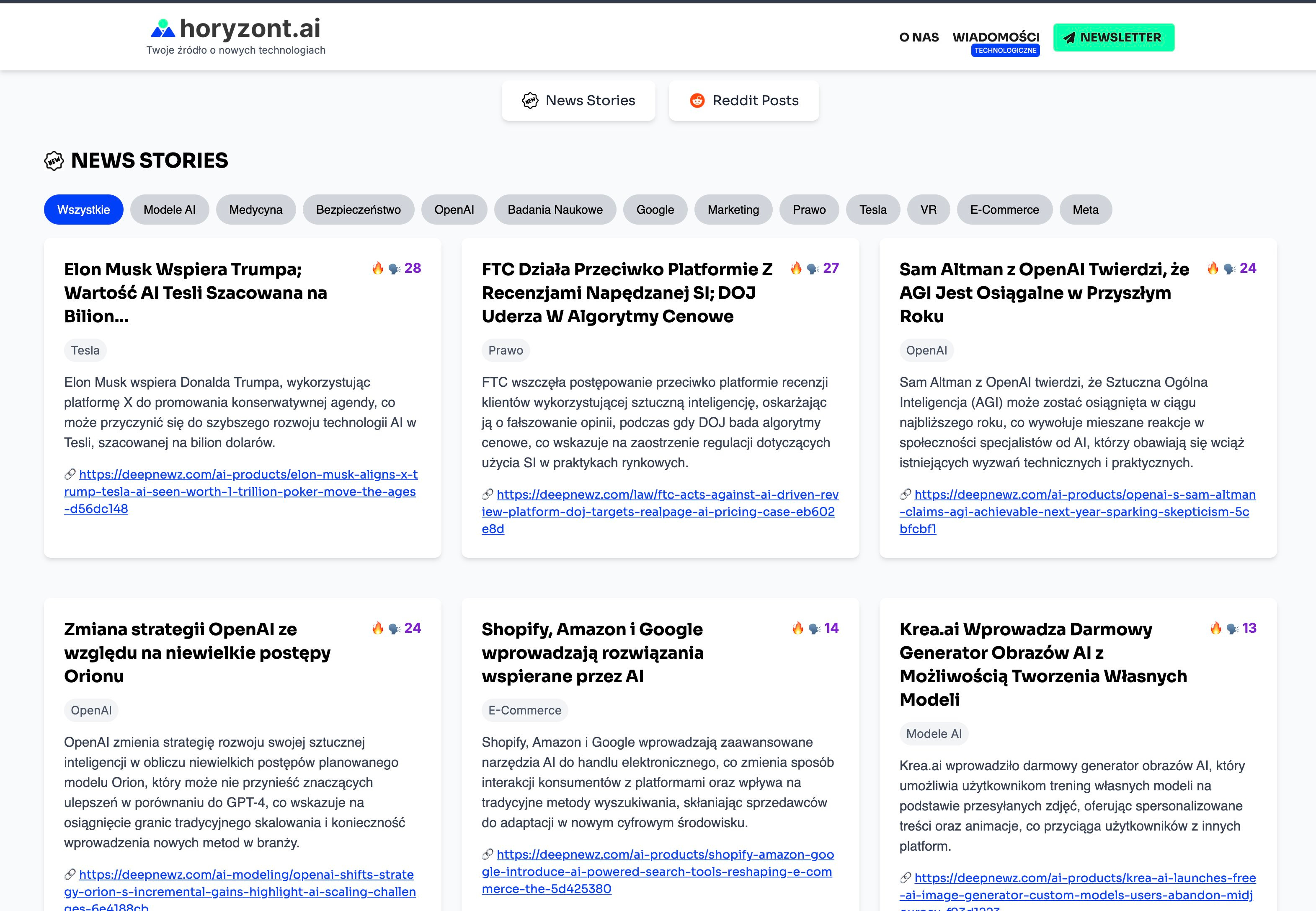 📰 Aktualizacja agregatora newsów na stronie horyzont.ai